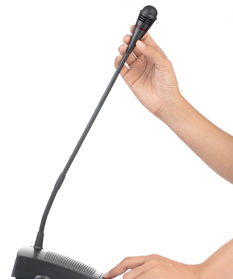 Professional wired and digital microphone systems for meetings, boardrooms, and conferences.
